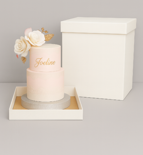La boîte à gâteau est facile à monter. Elle possède un fond et un couvercle séparés, ce qui facilite l'insertion du gâteau.