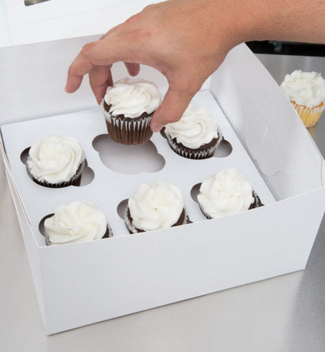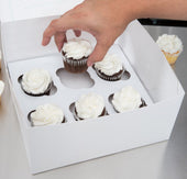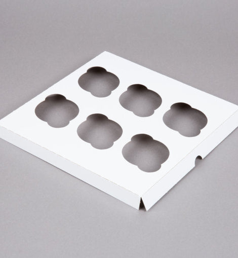 Cupcake Schachtel Weiss, 6 Stück mit Display - 20x30x9,5 cm + weiße Innenstütze