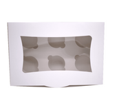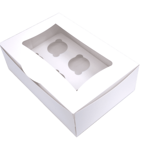 Cupcake Schachtel- mit transparentem Kunststoffdisplay,- mit internem Separator 4 Stück- Grösse: 17,5x17,5x8,5cm- Farbe: WeissSie sind sehr praktisch und werden für den direkten Verkauf oder Transport verwendet. Beidseitig weißer Zenitkarton, außen glänzend