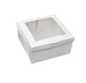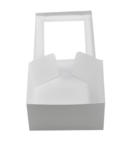 Weiße Boxen mit transparentem Kunststoffdisplay 14x18x10 cm. Schachteln mit transparentem Kunststoffdisplay zur Mehrfachverwendung in Süßwaren, Süßwaren